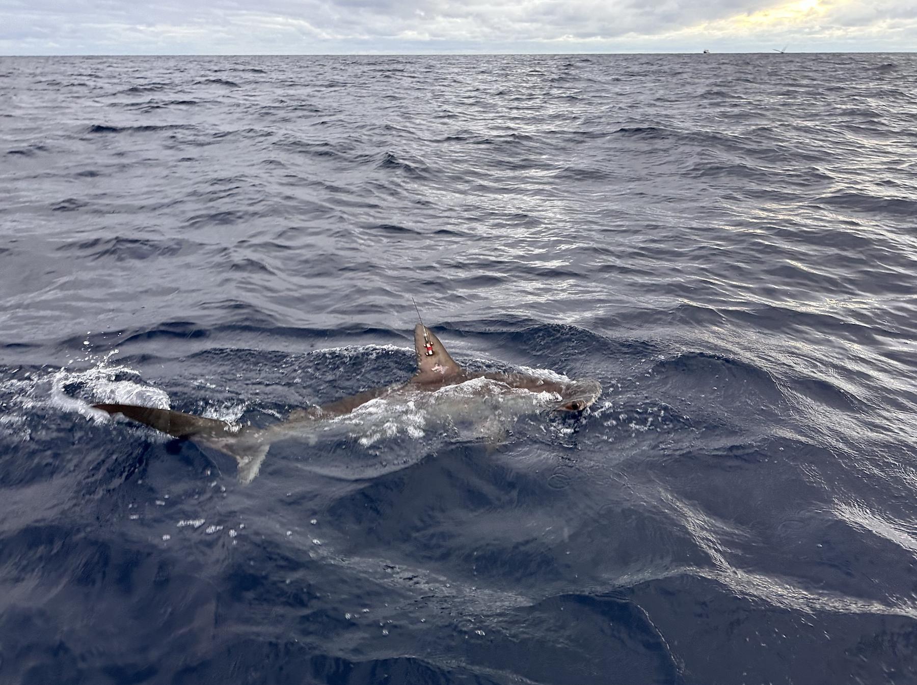 Hemos dado también datos de otras especies que no tienen rutas tan claras, como el tiburón azul (Prionace glauca) o el tiburón sedoso (Carcharhinus falciformis). También el tiburón tigre (Galeocerdo cuvier), que parece que prefiere estar en islas, es menos migratorio, de vez en cuando se le ocurre pegarse un enorme movimiento, pero suele terminar en islas o islotes. Esas fueron las cinco especies principales.