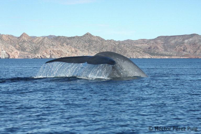 No sabemos si es por la pesca —se tienen que hacer estudios muy particulares—, para saber si realmente es un factor que está teniendo este impacto. Lo que sí sabemos es la parte ecológica: estas dos especies son teutófagas, es decir, se alimentan casi exclusivamente de calamar y la pesquería de calamar en el Golfo de California, ya se ha establecido que está colapsada, ya no es económicamente rentable. Existe el calamar en la región, pero ya no como antes. Creo que eso sí ha tenido impacto directo en estas poblaciones de calderones y cachalotes y creo que se han visto obligadas a moverse a otras zonas o a salirse del Golfo, eso es algo que hemos evidenciado. Había otras especies que bajaban o subían por temporadas, el patrón no es muy claro, pero el número de avistamientos ha disminuido. Las ballenas de aleta son las que normalmente vemos en otoño e invierno y bajan por temporalidad, por cuestión de su biología y su ecología que se mueven a otras zonas del Golfo. Aquí en la región las dejamos de ver en primavera-verano, pero en otros años veíamos un incremento en la ballena de Bryde o rorcual tropical (Balaenoptera edeni), que aumentaba su presencia, pero de 2013 y 2014, los avistamientos de ballena de aleta han disminuido. Sí siguen presentes, es de las especies más importantes y comunes de ballenas en la región, pero los números no son comparables con los que veíamos entre 2009 y 2012.