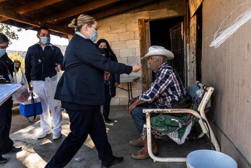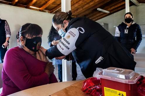 Cuando la brigada termina de vacunar a todos, se dan cuenta de que hay dos personas en la lista que no llegaron. Una de las que no llegó era una mujer de 85 años que un mes antes salió positiva en la prueba de Covid-19 y prefirió esperar las indicaciones de la brigada sanitaria antes de hacer la fila. Después de revisar que no presenta síntomas y de medir su presión arterial y temperatura corporal, los responsables sanitarios concluyeron vacunarla afuera del comedor.