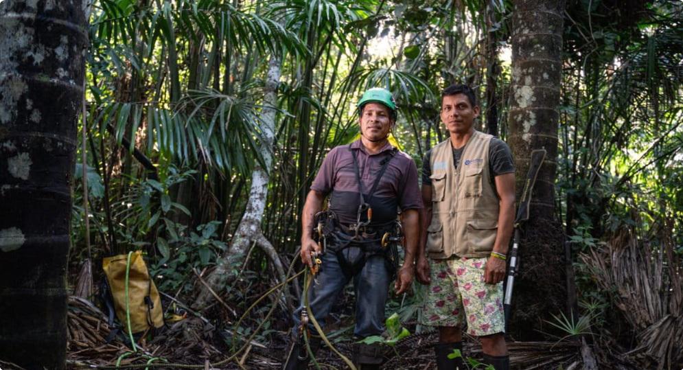 Comunidades nativas del Datem del Marañón, en la región de Loreto, fusionan saberes ancestrales con conocimiento científico para proteger las turberas que se encuentran en esta área de la Amazonía peruana. De esta manera protegen la palma de aguaje (Mauritia flexuosa), que es parte de su sustento alimenticio y vital en la conservación de las turberas. “Antes cosechábamos tumbando, ahora realizamos el escalamiento, o sea, ya no la tumbamos, aprovechamos la palmera cuando está de pie. Ese ha sido el principal cambio en estos años”, dice Segundo Chanchari, escalador de la comunidad nativa Puerto Díaz.