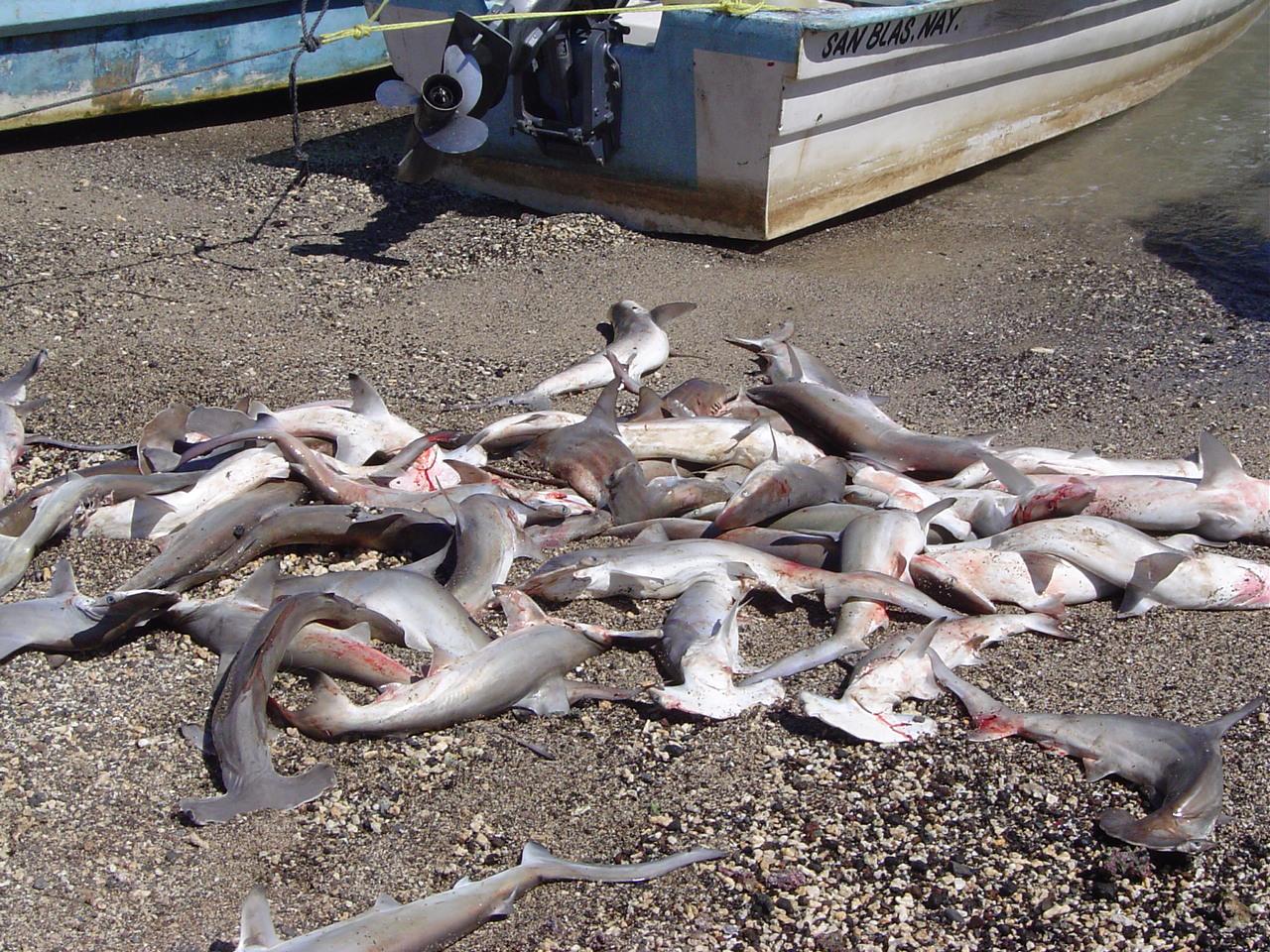 En fotos que el profesor de la Universidad de Guadalajara tomó el siguiente año, en 2007, se ven pescadores cortando tiburones martillo en Bahía Tiburoneros, en Isla Isabel, cercana a la reserva. En la arena, los hombres amontonan aletas y cabezas de los animales. El especialista asegura que los pescadores le explicaron que los habían capturado en Islas Marías.