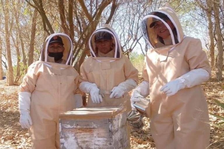 “En marzo, cuando las abejas empiezan a pecorear las flores, obtenemos una miel con un sabor muy diferente a la que venden en las tiendas; esta es orgánica”, describe Chan Díaz. Junto con sus compañeros, ha aprendido a tratar a las abejas de manera respetuosa y a realizar todo el proceso de manejo apícola: desde la extracción de la miel y el mantenimiento de las colmenas, hasta la prevención de enfermedades, el uso de equipo de protección y seguridad personal, y el envasado de los productos.
