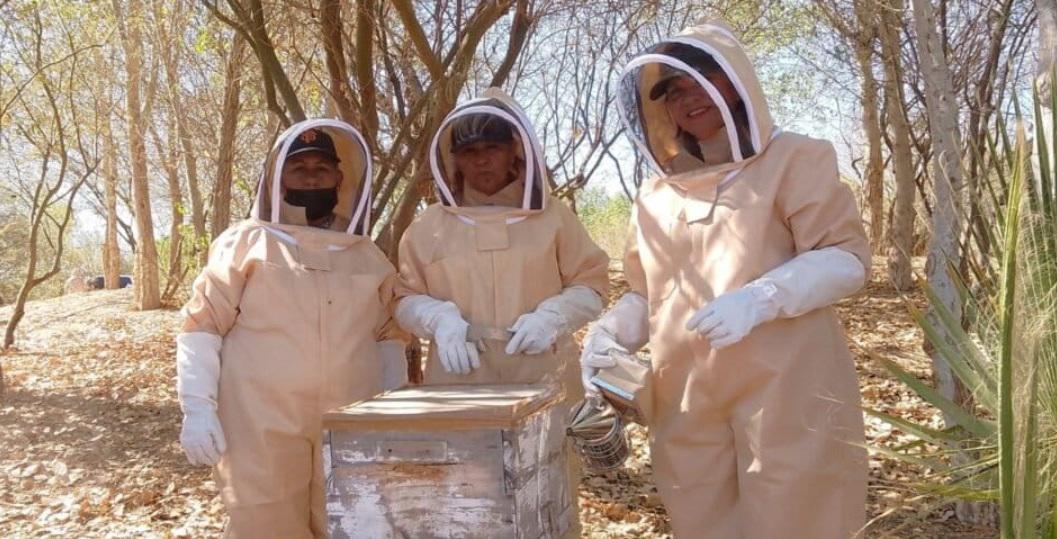A la fecha, cuentan con siete colmenas cuyas abejas polinizan las flores de mezquite (Prosopis glandulosa) y palo verde (Parkinsonia aculeata), árboles nativos del desierto que también crecen en el sitio.