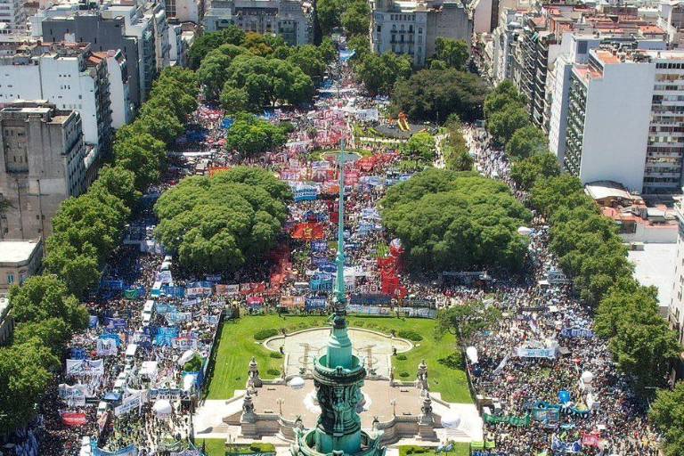 Para protestar contra las medidas económicas y sociales del Presidente Javier Milei, miles de argentinos salieron a las calles de la capital de Argentina.