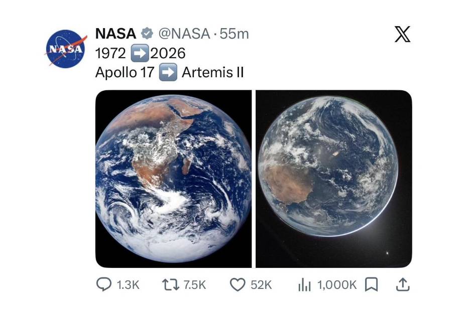 Artemis II envía capturas de la Tierra desde el espacio, 54 años después