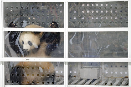 Men Meng y Jiao Qing fueron tratados como realeza en su vuelo de 12 horas desde Chengdu, en el sudeste de China, acompañados por un veterinario de Berlín, dos cuidadores de un zoológico chino y reporteros.