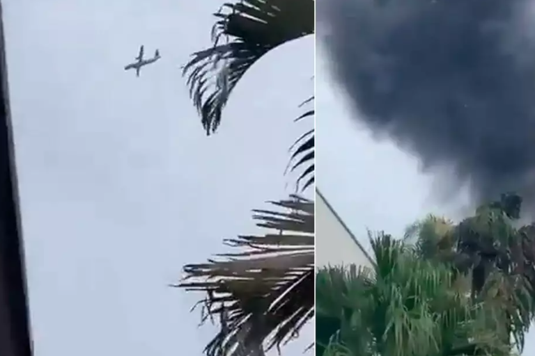 Diversos videos compartidos en las redes sociales mostraban lo que parecía ser el avión precipitándose contra un grupo de árboles, seguido de una gran columna de humo negro.
