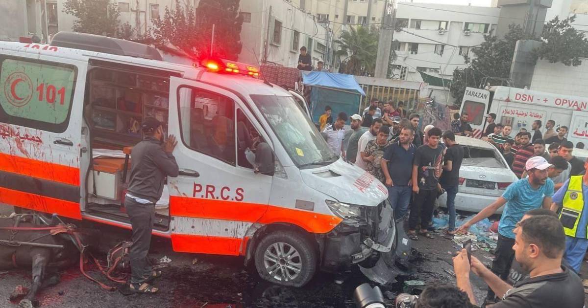 Bombardea Israel convoy de ambulancias a la entrada del hospital Al-Shifa en Gaza
