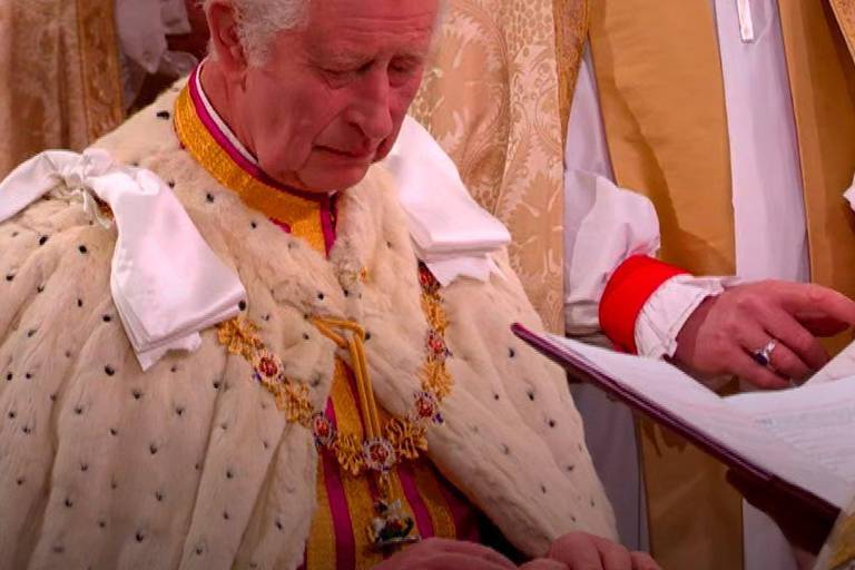 El arzobispo de Canterbury, Justin Welby, puso la corona de San Eduardo sobre la cabeza del nuevo Rey del Reino Unido y de los otros 14 reinos que forman parte de la Mancomunidad de Naciones desde 2022, ante unos 2 mil 300 invitados, entre ellos un centenar de jefes de Estado extranjeros, como el Presidente brasileño, Luiz Inácio Lula da Silva; y el monarca de España, Felipe V.