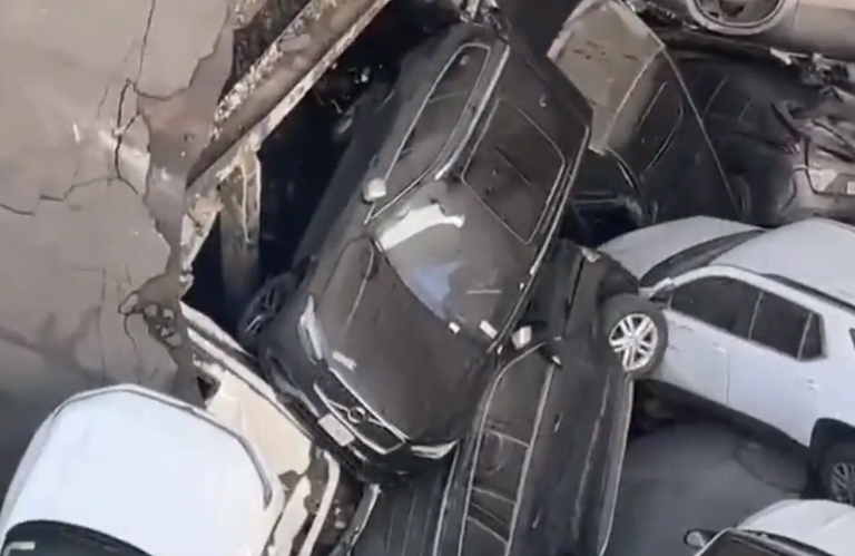 Las autoridades de seguridad informaron que el techo de la estructura del estacionamiento colapsado en Nueva York arrastró a decena de automóviles y camionetas que cayeron en el enorme socavón que se formó.