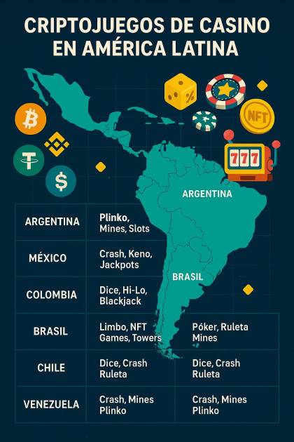Criptojuegos de casino en América Latina: tendencias y preferencias por país