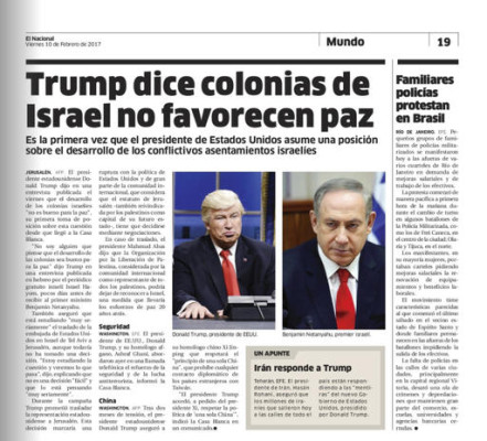 El error apareció en la página 19 de la edición del 10 de febrero, donde se publicó una nota con el título "Trump dice colonias de Israel no favorecen paz", que fue acompañada por una foto de Baldwin en su papel de Trump y otra del primer ministro israelí Benjamín Netanyahu.