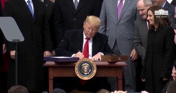 Acompañado del vicepresidente, Mike Pence y el representante comercial para EU, Robert Lighthizer reconoció a quienes hicieron posible la firma del acuerdo comercial, como Steve Mnunchin, Jared Kushner.