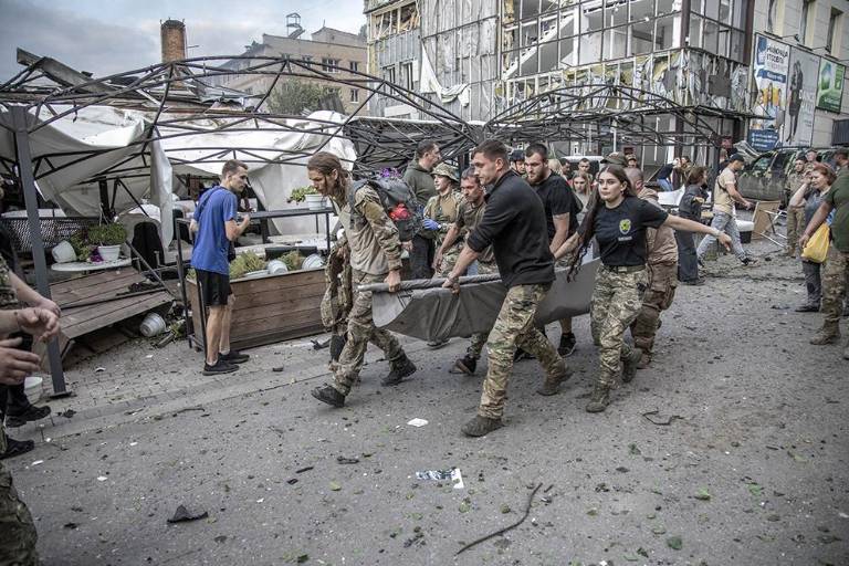 Entre los muertos, estaba Victoria Amelina, una conocida autora Ucranian. Sus colegas, amigos y voluntarios de la arrastraron entre las ruinas, mal herida. La cargaron hacia una ambulancia en total angustia mientras los paramédicos gritaban a la prensa que se largaran de ahí.