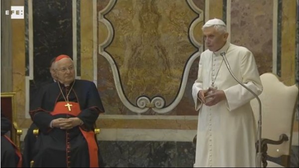 “Gracias, Santo Padre, por vuestra bondad, que desde el primer día de vuestra elección ha afectado cada día de mi vida”, declaró Benedicto XVI en declaraciones improvisadas. “Esperamos que pueda usted avanzar, con todos nosotros, por esta vía de misericordia divina, mostrándonos la vía de Jesús hacia Dios”.