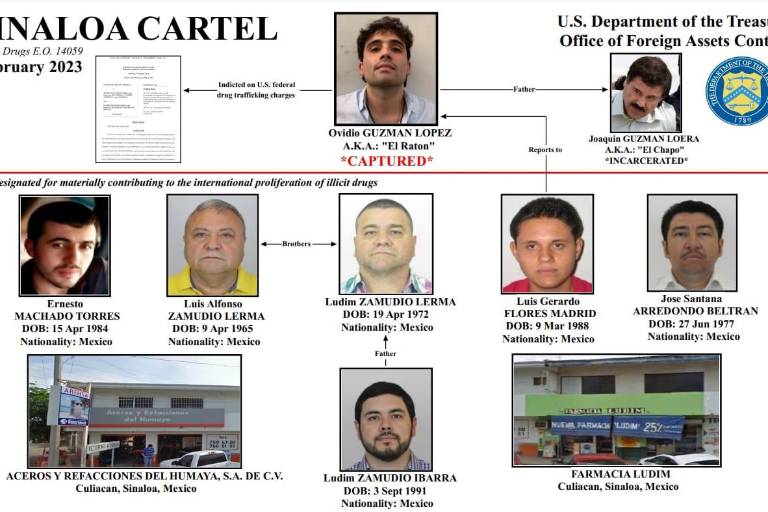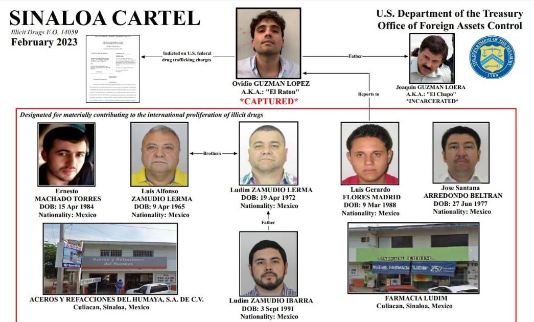 Según el Gobierno de EU, la familia Zamudio es propietaria de numerosas empresas en México, dos de las cuales, Aceros y Refacciones del Humaya, S.A. de C.V. y Farmacia Ludim, designadas también por la OFAC, “de conformidad con EO 14059”, por supuestamente haber realizado, o intentado participar, actividades o transacciones que contribuyeron materialmente a la proliferación internacional de drogas ilícitas o sus medios de producción, o planteó un riesgo significativo de contribuir materialmente a la misma.