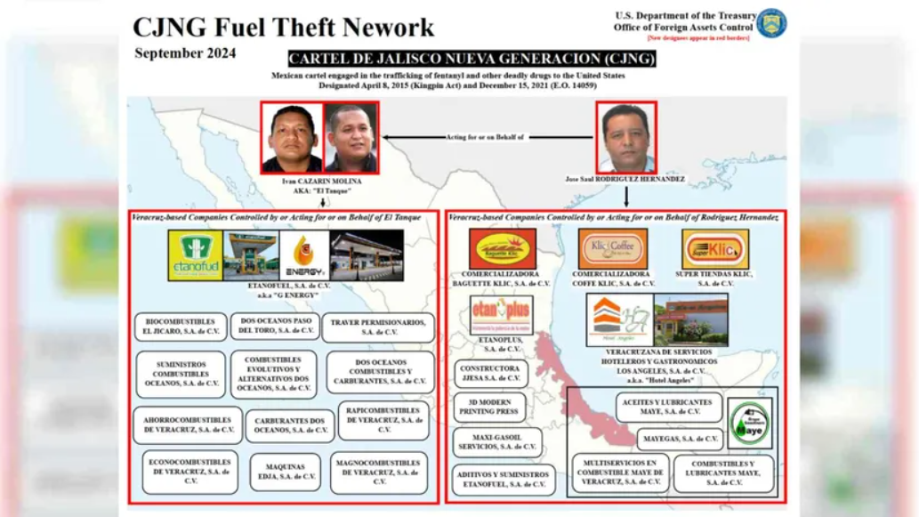 “A través de familiares y socios, maneja una red de gasolineras minoristas aparentemente legítimas donde vende combustible robado, también lo distribuye a terceros en México, quienes a su vez lo comercializan en el mercado estadounidense, muchas veces en Texas”, detalló la OFAC.