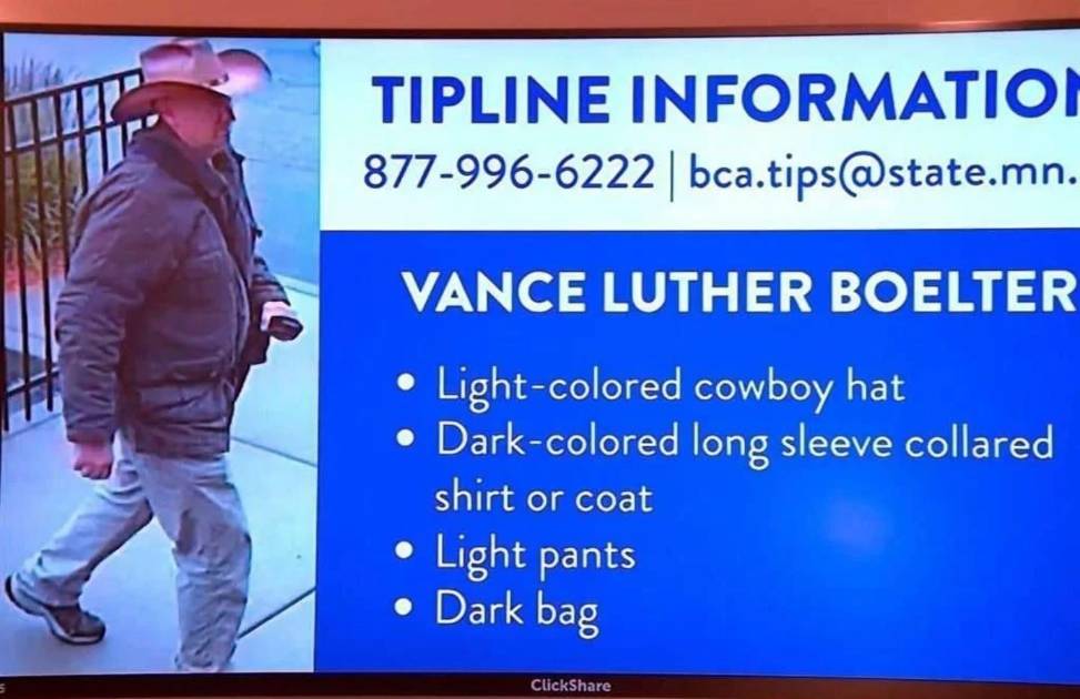Boelter, quien se describía en su biografía en línea como experto en seguridad con experiencia en Europa del Este, África, América del Norte y Medio Oriente, fue capturado el 15 de junio en un área boscosa cercana a su domicilio en Green Isle, condado de Sibley, tras ser detectado por una cámara de rastreo.