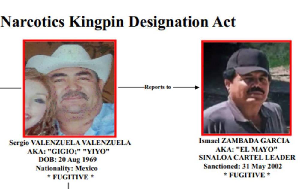 Valenzuela Valenzuela “es el primer jefe de plaza al que apuntamos, pero no será el último”, advirtió Miller sobre el sujeto, ubicado como líder de una organización responsable de trasladar miles de kilogramos de fentanilo a la frontera de Estados Unidos.