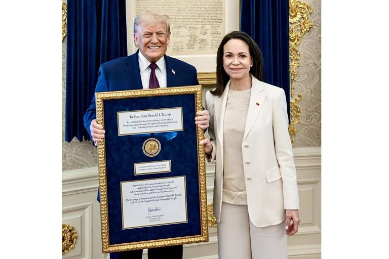 El pasado jueves, Machado acudió a una comida privada en la Casa Blanca con el republicano y afirmó que le entregó su medalla, pues “se merecía el galardón”. Trump calificó el gesto como “maravilloso y de respeto mutuo”. Este hecho se registró en el marco de la intervención militar en Caracas para derrocar a Nicolás Maduro.