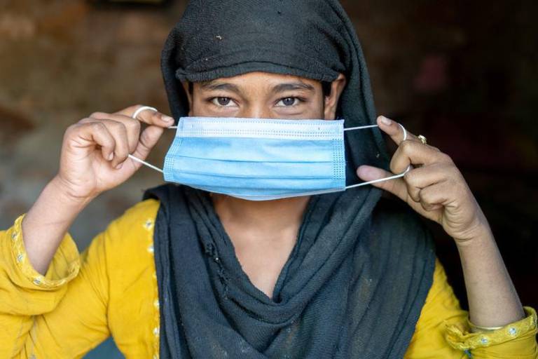 Las vacunas Covid-19 se administran en un hospital de Masaka, Uganda, donde espera esta madre con mascarilla y su bebé. © UNICEF/Kalungi Kabuye