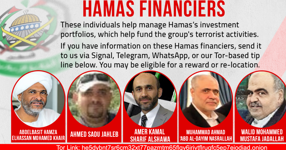 Específicamente, el Departamento de Estado busca información sobre los facilitadores financieros de Hamás identificados como Abdelbasit Hamza Elhassan Khair, Amer Kamal Sharif Alshawa, Ahmed Sadu Jahleb, Walid Mohammed Mustafa Jadallah y Muhammad Ahmad ‘Abd Al-Dayim Nasrallah.