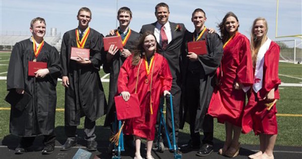 CARLISLE, Iowa, EU (AP) — Los primeros septillizos de la historia en sobrevivir, se graduaron el domingo de una secundaria en Iowa.