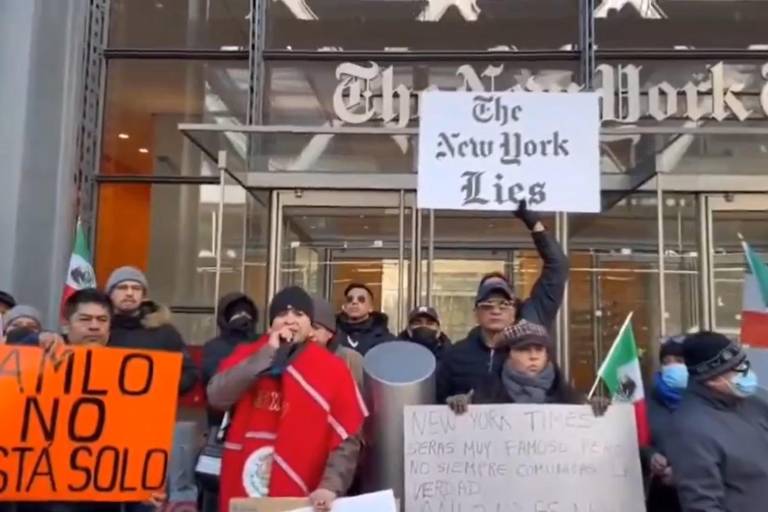 Migrantes simpatizantes de AMLO en EU protestan afuera del The New York Times