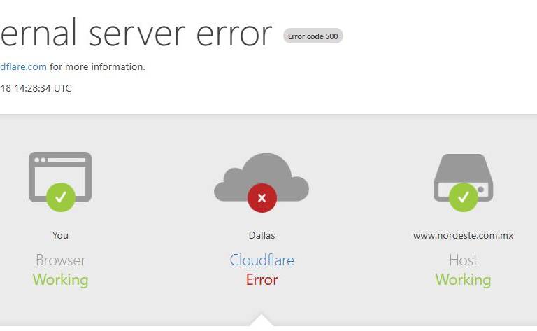 La propia empresa Cloudflare lanzó un aviso temprano para alertar que había detectado un problema que afectaba a múltiples clientes en el mundo y aunque algunos sitios ya se han recuperado, otros siguen inoperantes por esta falla.
