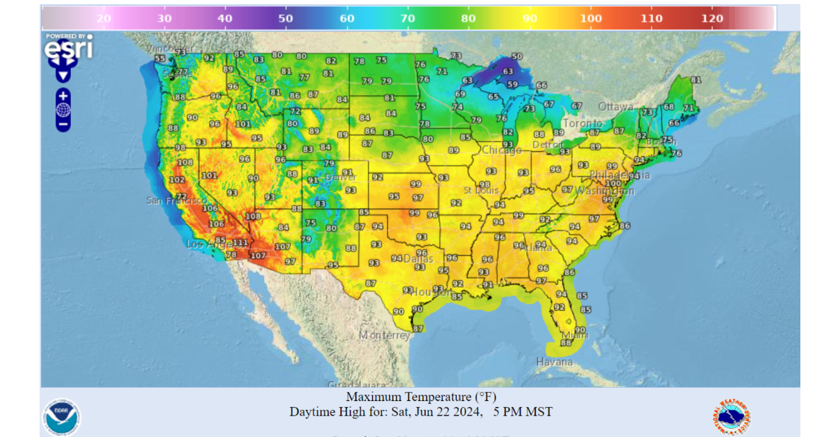 Los meteorólogos del Servicio Meteorológico Nacional informaron este sábado que esperan que las temperaturas altas estén entre los 33 grados desde el centro y el sur de las llanuras hasta la costa este.