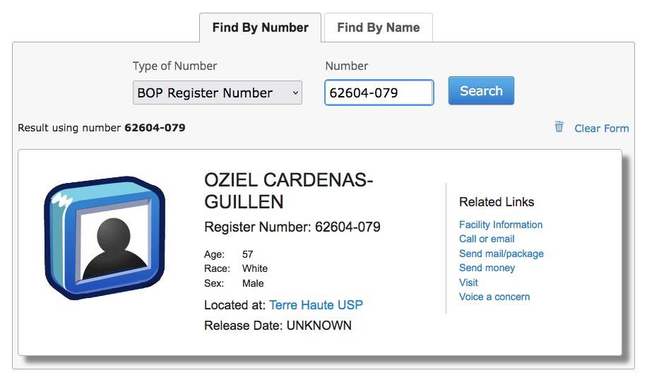 Para este viernes, el sistema señalaba como desconocida la fecha de liberación del capo de las drogas.