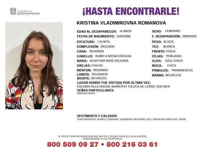 La Cancillería de la Federación Rusa convocó al Embajador de México, Eduardo Villegas Megías, para reiterar su preocupación por la presunta retención ilegal de la joven rusa Kristina Románova, de 17 años, en instalaciones del Sistema para el Desarrollo Integral de la Familia del Estado de México, en Toluca, desde 2023.