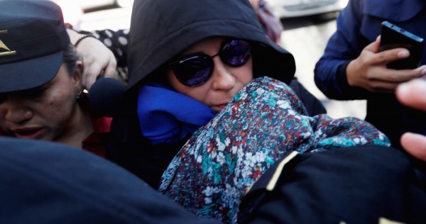 Rodeada por una nube de periodistas, escoltada por agentes de la Policía y cubierta con una capucha, unas gafas de sol y un pañuelo que tapaba casi toda su cara, la ex primera dama llegó a la Torres de Tribunales sin dar declaraciones.