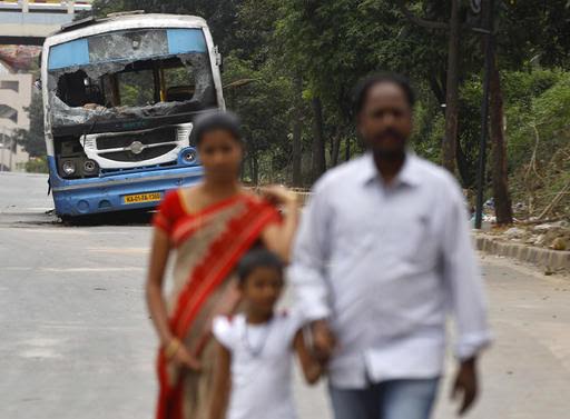 El toque de queda se impuso después de que muchedumbres enfurecidas prendieron fuego a docenas de autobuses, camiones y autos y atacaron comercios y negocios en Bangalore y otras partes del estado de Karnataka.
