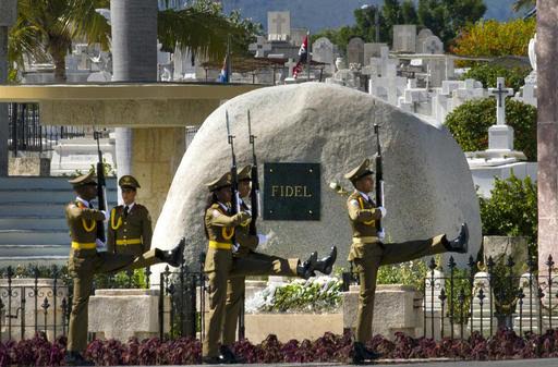 Los militares cubanos dispararon 21 cañonazos y multitudes en la entrada cantaron el himno nacional para despedir los restos líder cubano que fue enterrado fuera de la vista del público. En el mismo cementerio reposan los restos del prócer independentista José Martí.