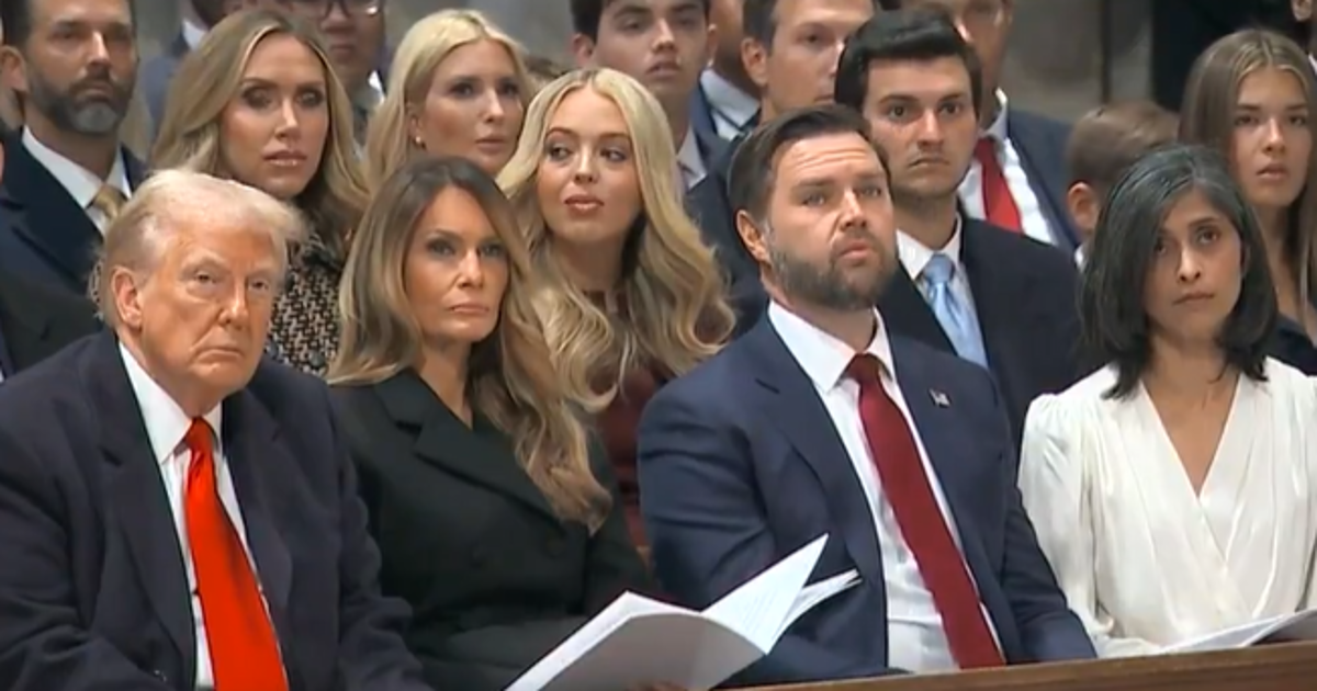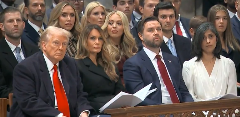 Trump, que estaba con la mirada al frente en un inicio, comenzó a mover la cabeza hacia otros lados. El vicepresidente J.D. Vance fue más expresivo, al voltear la cara para mirar a su esposa.