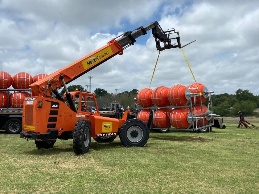 A través de un video compartido por el Gobernador, se observa que desde el viernes 7 de julio llegaron tractocamiones a la frontera entre Eagle Pass y Piedras Negras, Coahuila, que llevaban boyas de color naranja.