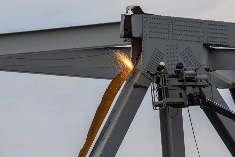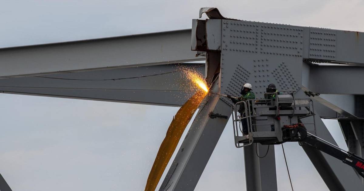 Las fotografías publicadas por los funcionarios mostraban a equipos con equipo de protección usando un “soplete de corte exotérmico” en secciones del puente de acero.
