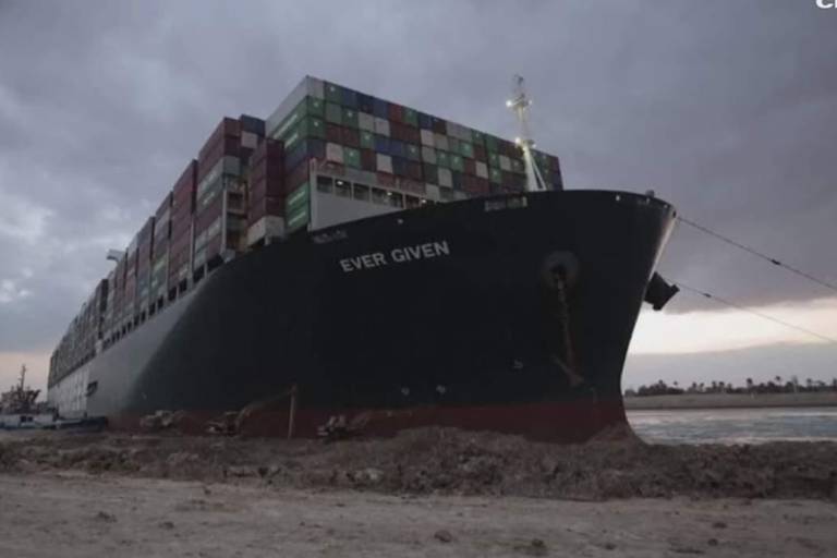 La navegación quedó suspendida después de que el barco, de bandera panameña y propiedad de la naviera taiwanesa Evergreen, con 18.300 contenedores a bordo, quedó encallado en medio de fuertes vientos y una tormenta de arena que azotaba Egipto.