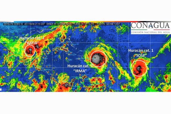"Tres huracanes, 'Katia', 'Irma' y 'José', se juntan en el Océano Atlántico"