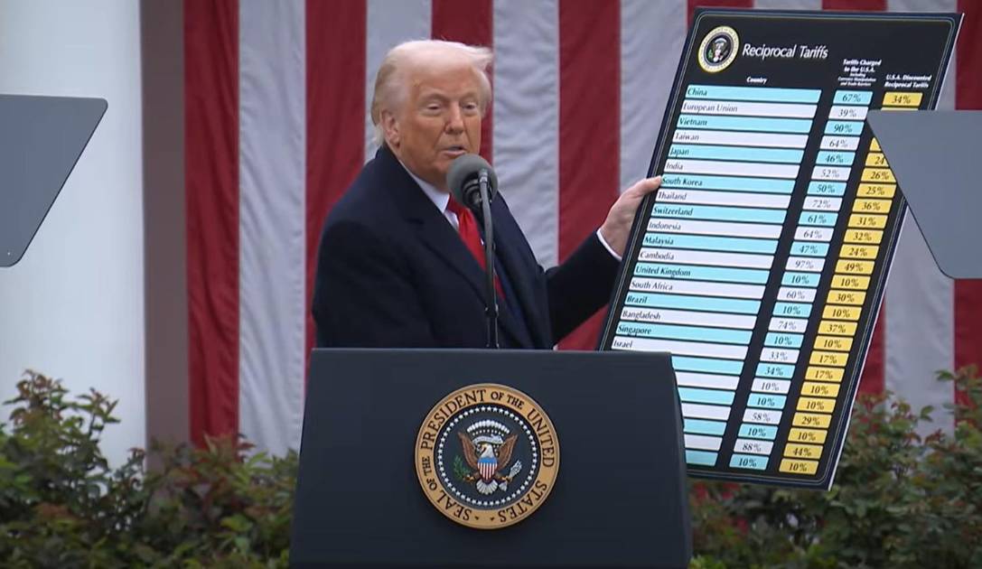 El Presidente Donald Trump anunció este 2 de abril aranceles con base del 10 por ciento sobre los productos importados a Estados Unidos para un grupo de alrededor de 60 países, que altos funcionarios del Gobierno estadounidense etiquetaron como los “peores infractores”, a los cuales se les cobraría un gravamen a la mitad de la tasa que cobraban a Estados Unidos. Ni México, ni Canadá figuraban en la lista.