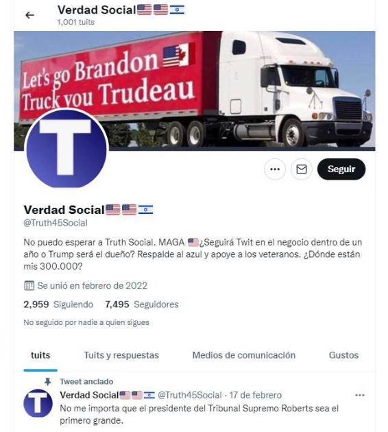 La red social impulsada por Trump tiene una interfaz muy similar a la de Twitter, con una página de perfil en la que pueden leerse las “verdades” (equivalentes a los tuits) de los usuarios a los que se sigue, una ventana para buscar a otros internautas y la posibilidad de enviar mensajes privados.