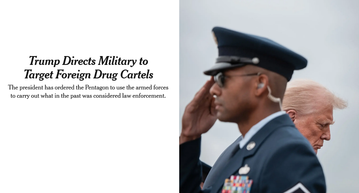 Según fuentes citadas por el diario, Trump firmó en secreto una orden que “proporciona una base oficial para la posibilidad de realizar operaciones militares directas en el mar y en suelo extranjero contra los cárteles”.