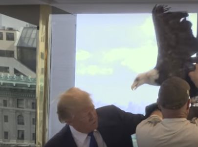 "Un águila calva, símbolo nacional de EU, ataca a Donald Trump durante una sesión de fotos"