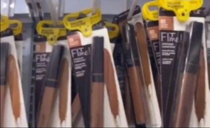 En las imágenes difundidas por ‘Aly Nicoletta’, se observa un estante de maquillaje, específicamente de correctores para bolsas de los ojos y ojeras, pero lo que llamó la atención -y generó polémica- fue que solo la tonalidad más oscura contaba con broches de seguridad para evitar robos.