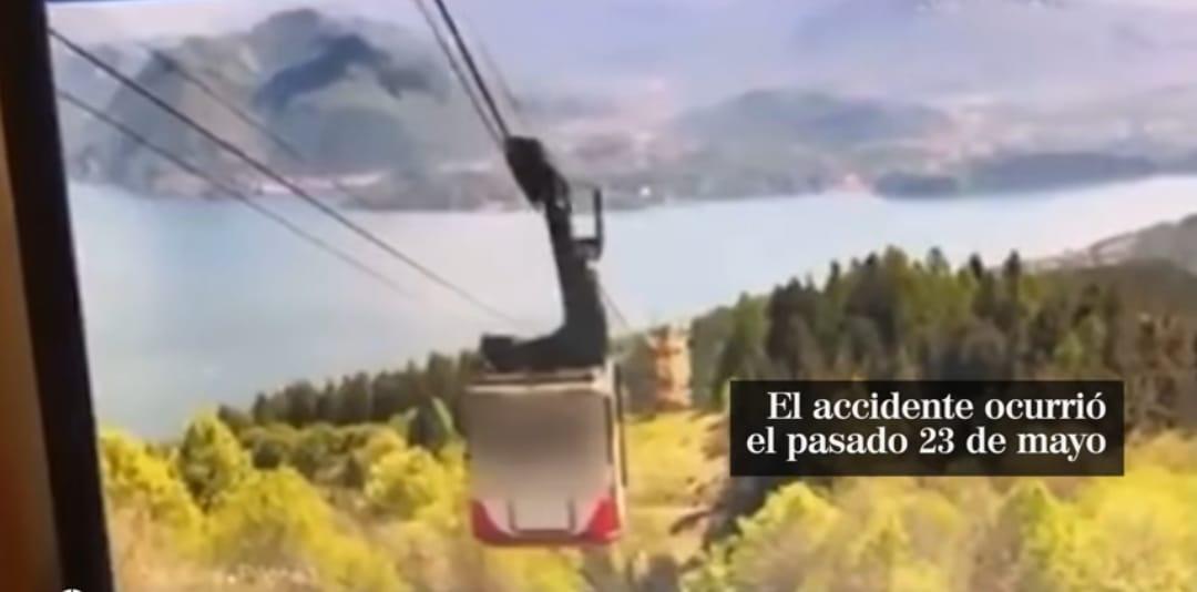 En las imágenes se puede ver cómo la cabina número 3 se acerca lentamente a la estación de llegada y se detiene. Sin embargo, luego de repente vuelca, retrocede a gran velocidad y choca contra un pilar antes de caer al suelo con 15 personas a bordo.