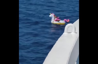 Un ferry rescató a una niña de cuatro años en mar abierto, después de ser arrastrada en un flotador de unicornio.