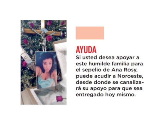 Si usted desea apoyar a este humilde familia para el sepelio de Ana Rosy, puede acudir a Noroeste, desde donde se canalizará su apoyo para que sea entregado hoy mismo.