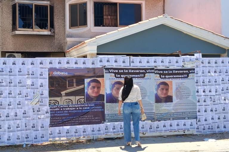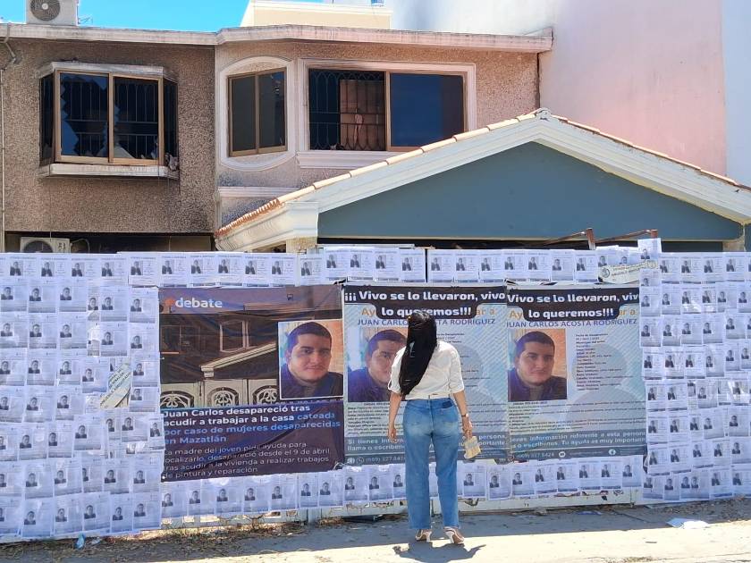 MAZATLÁN._ A un año de la desaparición de su hijo, Neivi Rodríguez Morales regresó al lugar donde fue visto por última vez y frente a dicha vivienda colocó fichas de búsqueda y lonas, en un acto de protesta marcado por la ausencia de avances en la investigación para localizar a Juan Carlos Acosta Rodríguez.