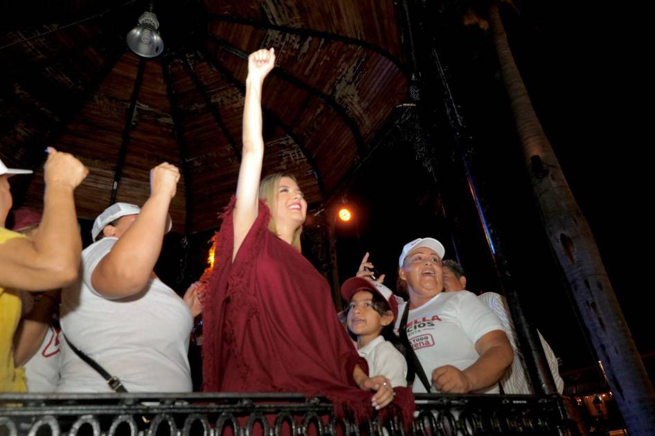 MAZATLÁN._ Al grito de ¡Presidenta... Presidenta! Estrella Palacios se abrió paso entre la gente congregada en la Plazuela Machado durante la fiesta cívica que puso fin a su campaña proselitista.